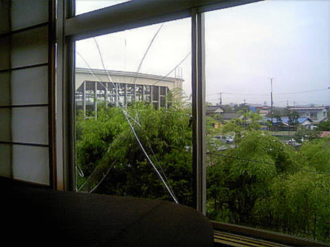 スピーカーが窓ガラスを