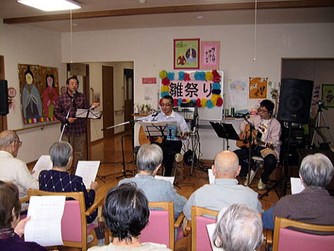 宅老ホームひな祭りでコンサートを